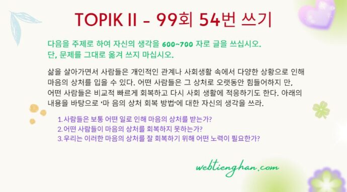 [Luyện viết TOPIK II] Viết câu 54 – Kì 99