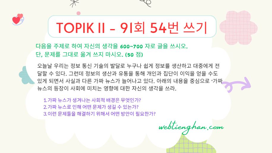 Đề thi viết TOPIK II câu 54 – kì thi thứ 91 và bài viết tham khảo của Web Tiếng Hàn.