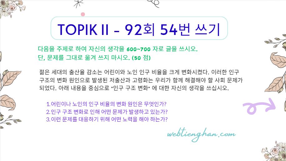 Đề thi viết TOPIK II câu 54 – kì thi thứ 92 và bài viết tham khảo của Web Tiếng Hàn.